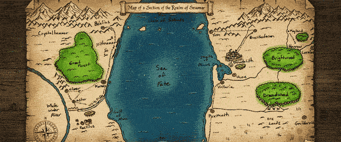 Astor Bolalius Black Cliffs Crystalhammer The Great Forest Kornas (Capital City) Nithnamar Sesamar City Vilmer Wall of Castillon White Cliffs White Water River